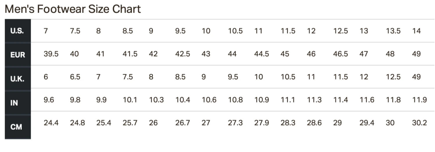 | Size | 7, 7.5, 8, 8.5, 9, 9.5, 10, 10.5, 11, 11.5, 12, 13 |
